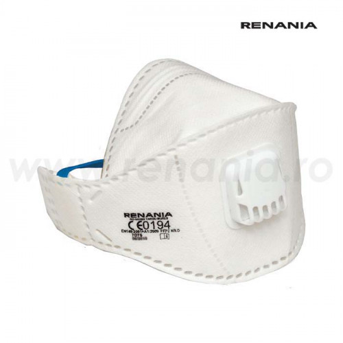 MATERIAL: filtrant, din straturi multiple de polipropilena si bumbac bacteriostatic, benzi de prindere din elastic, culisabile prin canal de prindere, clema nazala din polipropilena, spuma polipropilenica in zona nasului, supapa de expiratie siliconica;