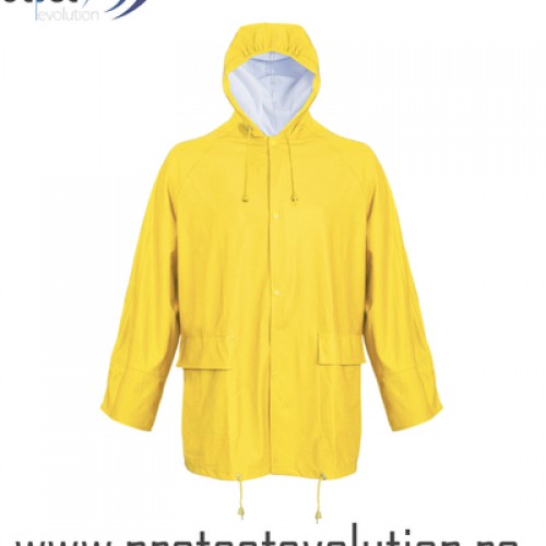 Scurta de ploaie cu gluga prevazuta cu snur.