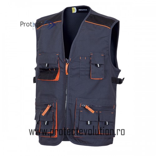 Vesta de lucru cu multiple buzunare exterioare, inchidere cu clapa sau fermoar.